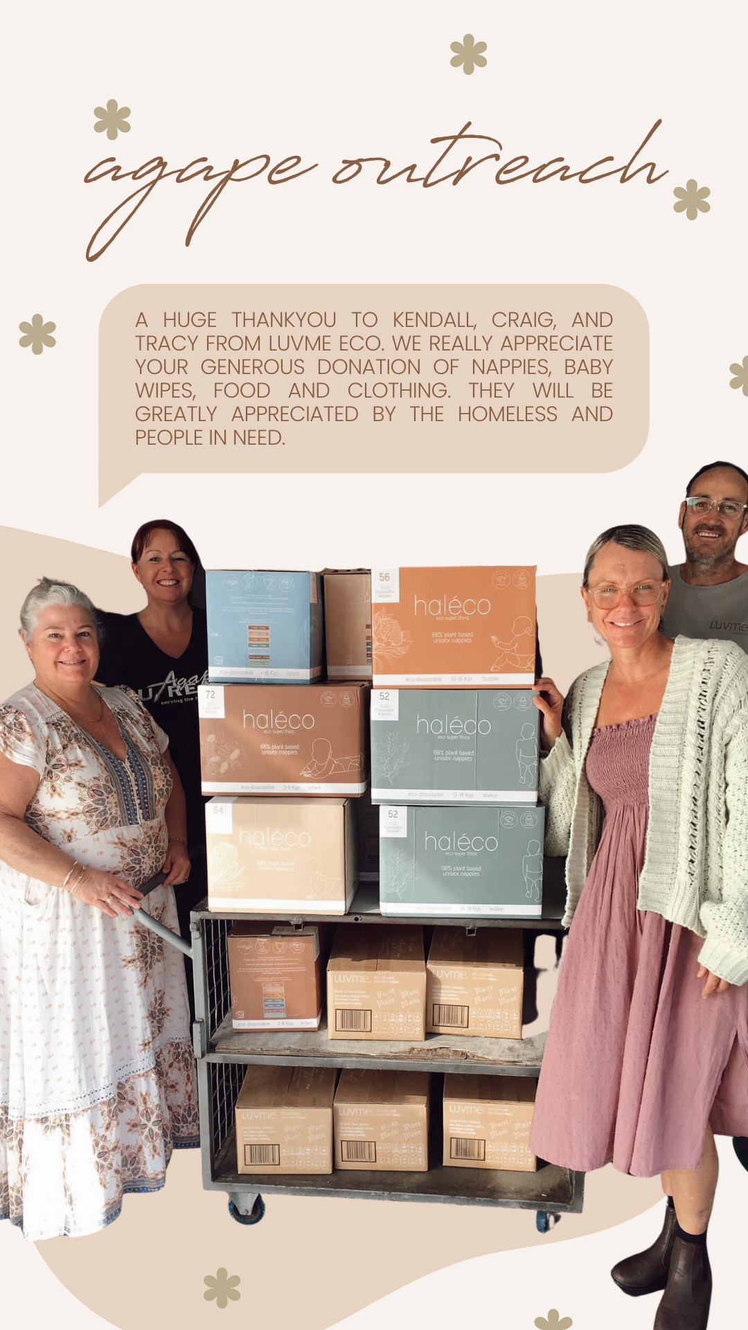 We love seeing love in action and Agape is just that! We are grateful that we can partner with Agape by donating food and nappies.